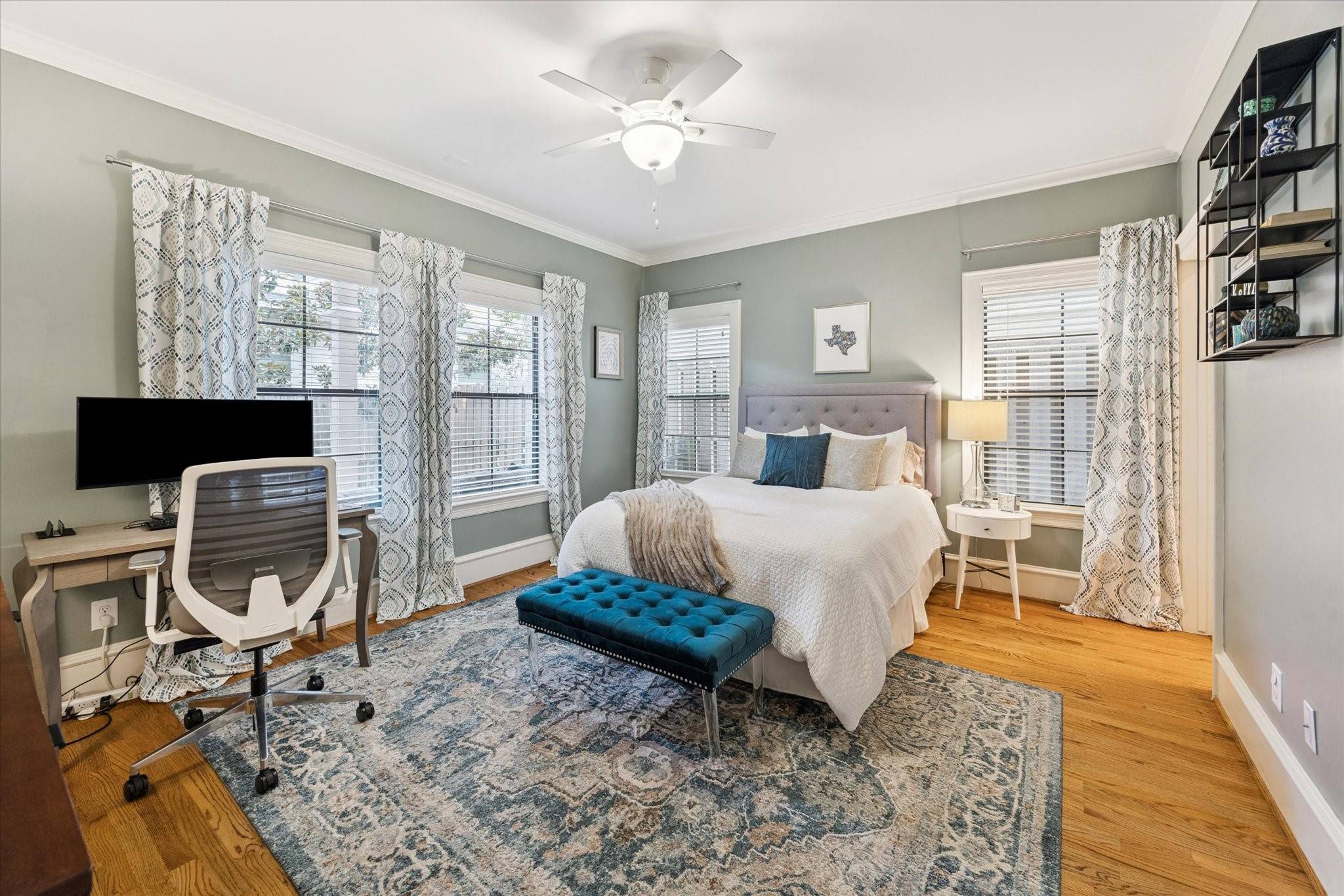 Timeless style meets New Orleans flair in this stunning home with double-gallery porches. Tall ceilings, hardwood floors, and beautiful millwork enhance the spacious layout filled with natural light. The chef's kitchen features quartz counters, stainless appliances including a JennAir gas range and oven, and Bosch dishwasher. The expansive living and dining areas shine with built-ins, a gas fireplace, interior shutters, and surround sound. The primary bath offers a spa-like retreat with marble finishes, a jetted tub, double vanities, and a glass-enclosed shower with rain and handheld showerheads. Enjoy the landscaped backyard with a covered patio—perfect for relaxing or entertaining. The roof was replaced in *2024 for added value and longevity. Ideally located just steps from the Nicholson Hike & Bike Trail and neighborhood restaurants and shops, this home showcases timeless quality and sophisticated charm. *Per seller.